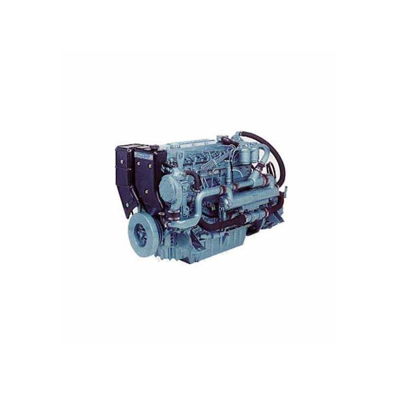 Motor de propulsión PERKINS SABRE M 135, 6 cilindros, 6.000 C.C., 135 HP a 2600 RPM, dotado de reductora ZF 45 A (2,03:1)